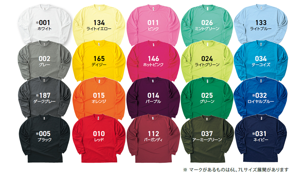 | 価格 | 140-150¥1,166 税込 (¥1,060 税別)SS-LL ¥1,232 税込 (¥1,120 税別)3L-5L ¥1,584 税込 (¥1,440 税別)6L-7L ¥1,975 税込 (¥1,795 税別)※プリント加工料金は含まれていません。 詳しくは料金表をご確認ください。 |