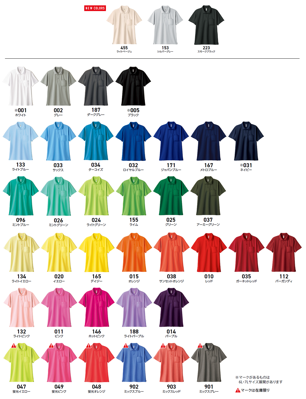 | サイズ | SS,S,M,L,LL,3L,4L,5L,6L,7L |