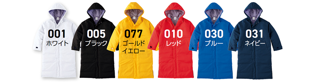 野外イベントで活躍するロング丈、中綿入りの保温性に優れたベンチコート。高い衿で、真冬の寒さもなんのその!裾のスリットと留め具で動きやすさアップ。多少の雨も防ぎます。